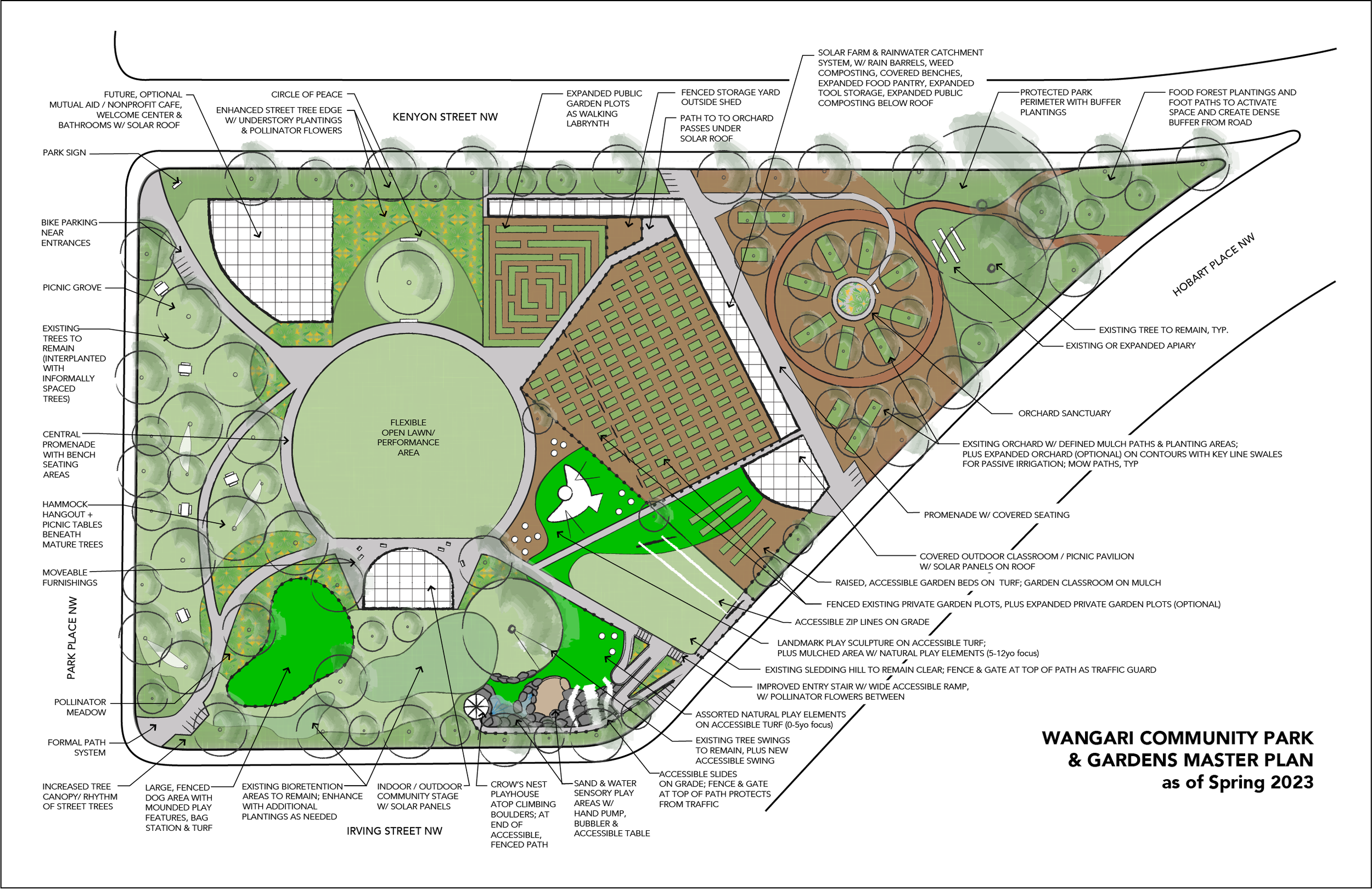 The Wangari Community Park Collective is a nonprofit organization led by community members who call Park View and its immediate neighbors our home. We are committed to designing, building, and sustaining Wangari Community Park in partnership with and on behalf of our wonderfully diverse community — and to doing so in a timely, democratic, and responsible manner.
